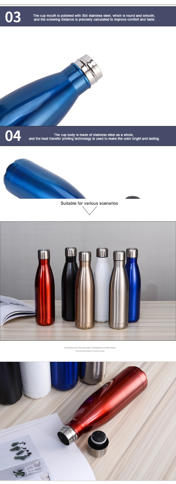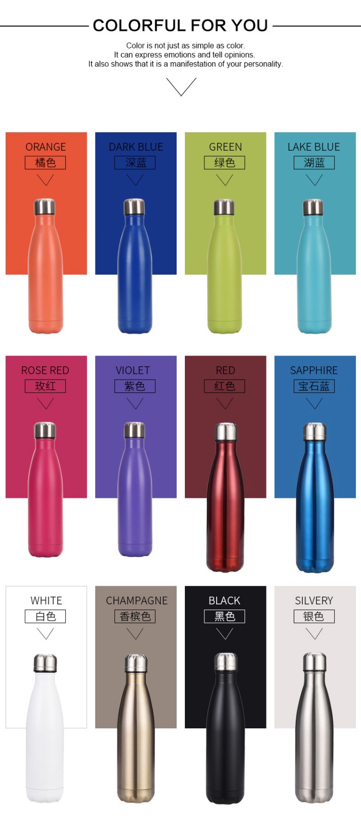Made of high quality stainless steel material water bottle, non-stick, eco-friendly, heat- resistant, beautiful design, big capacity and easy to carry, multi colors in stock optional, OEM/ODM are welcome, custom color and print logo are available