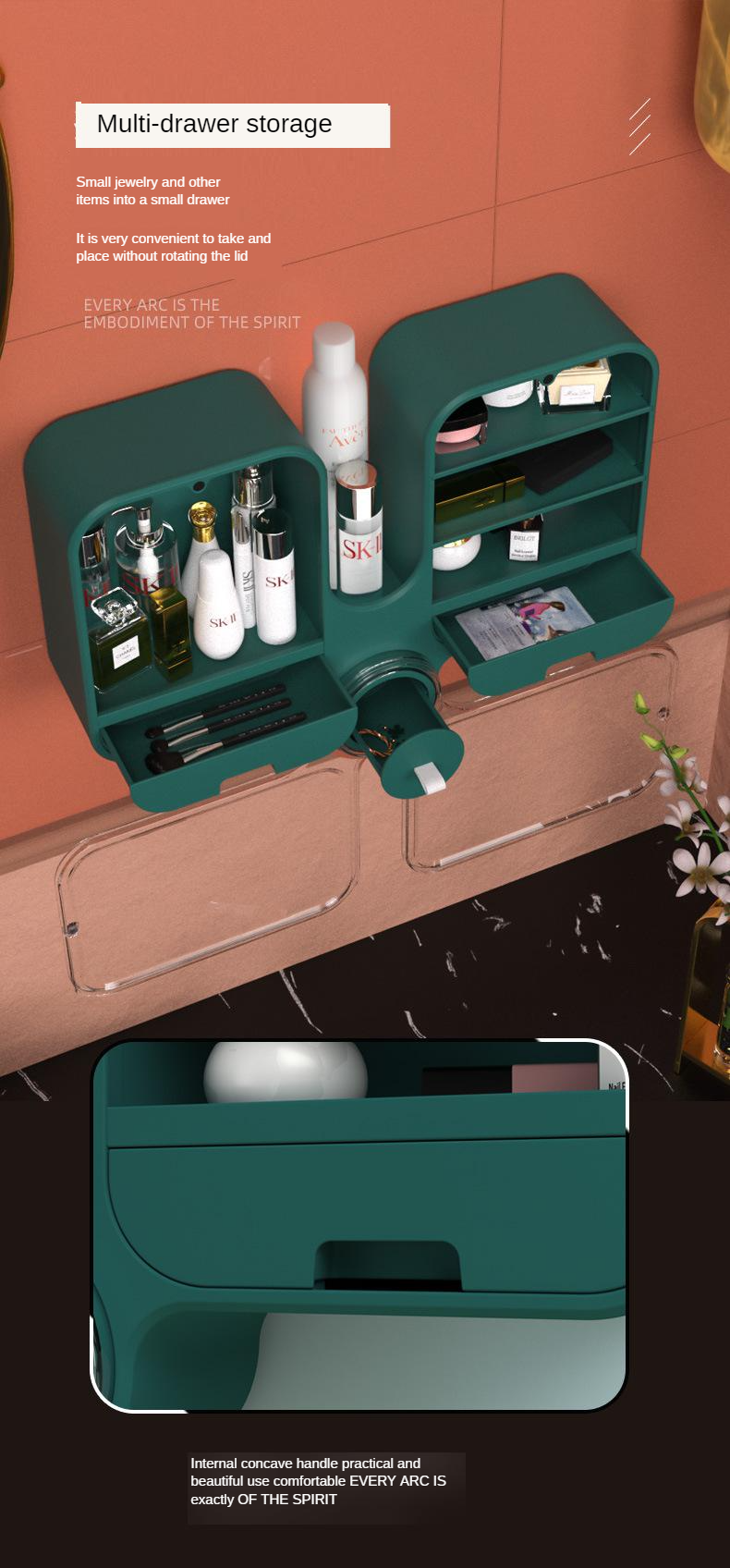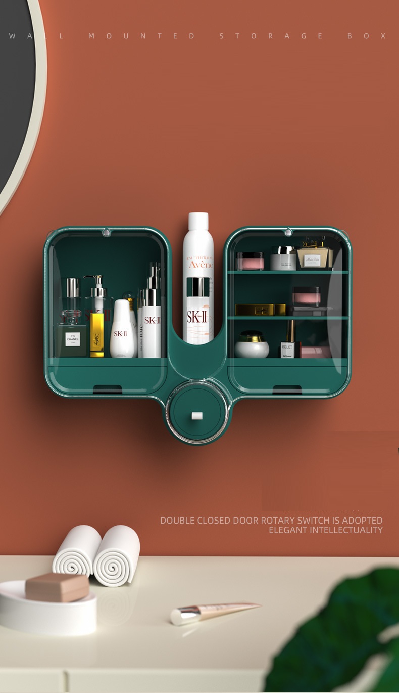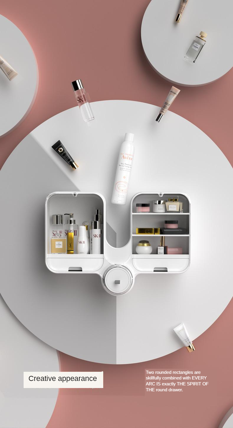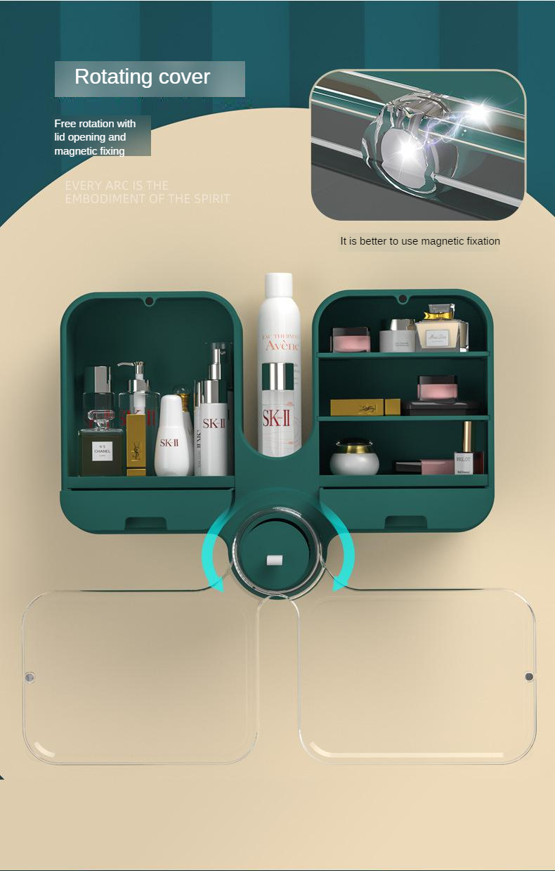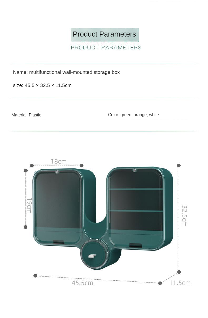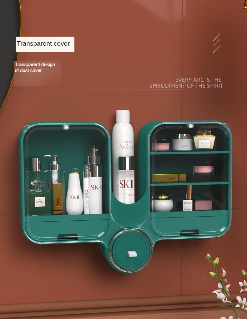 Cosmetic storage box wall-mounted punch-free dust-proof household large-capacity toilet wall-mounted