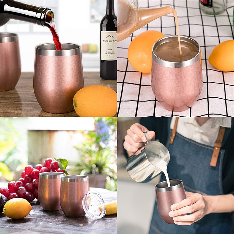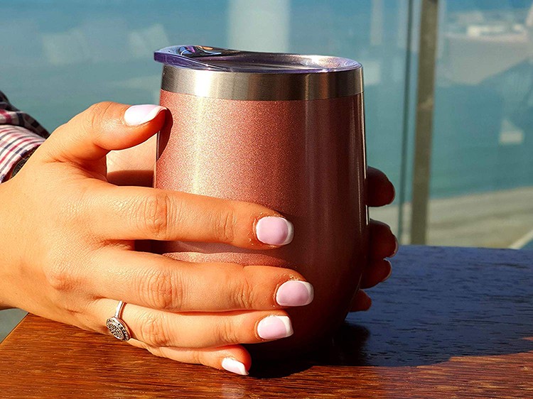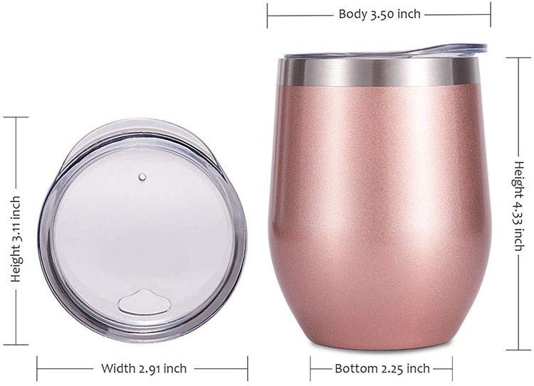 4. Stylish Designs: 12oz capacity designed especially for you to enjoy your wine and coffee. Curved body for easy holding. Advanced technology coated, exquisite for your home, parties, outdoors and office time. This elegantly designed vacuum wine tumbler with lid is a perfect gift for your family, your friends, and yourself.