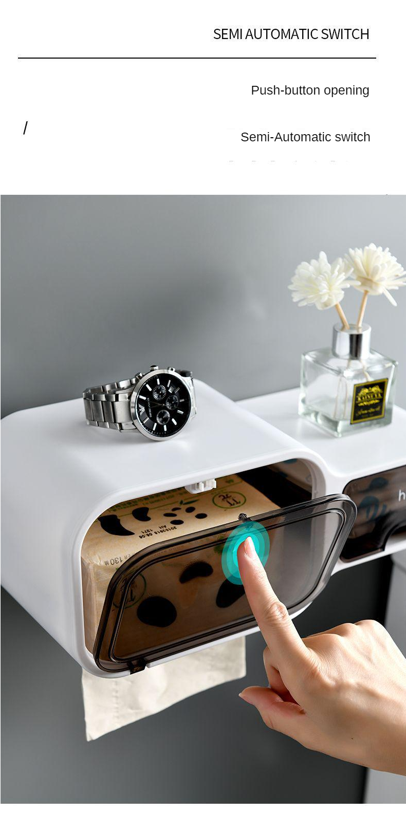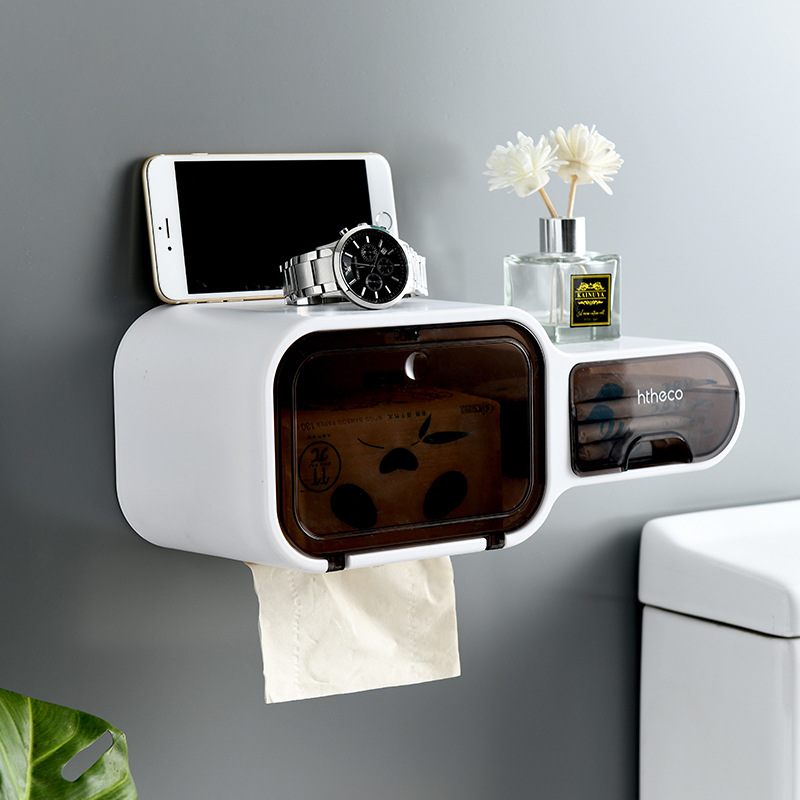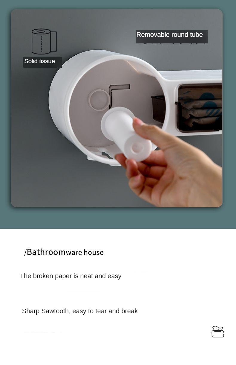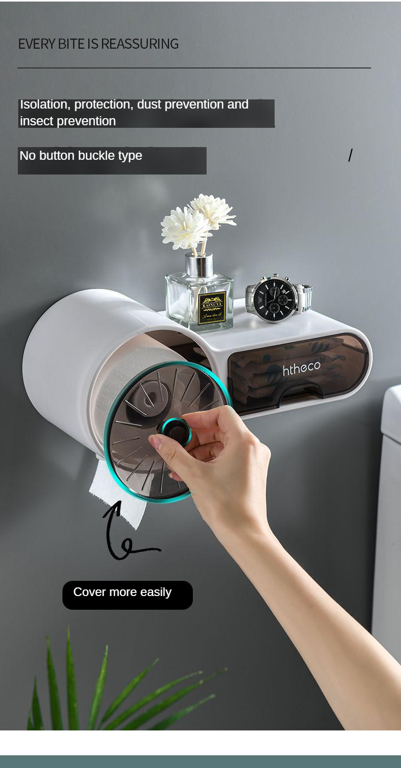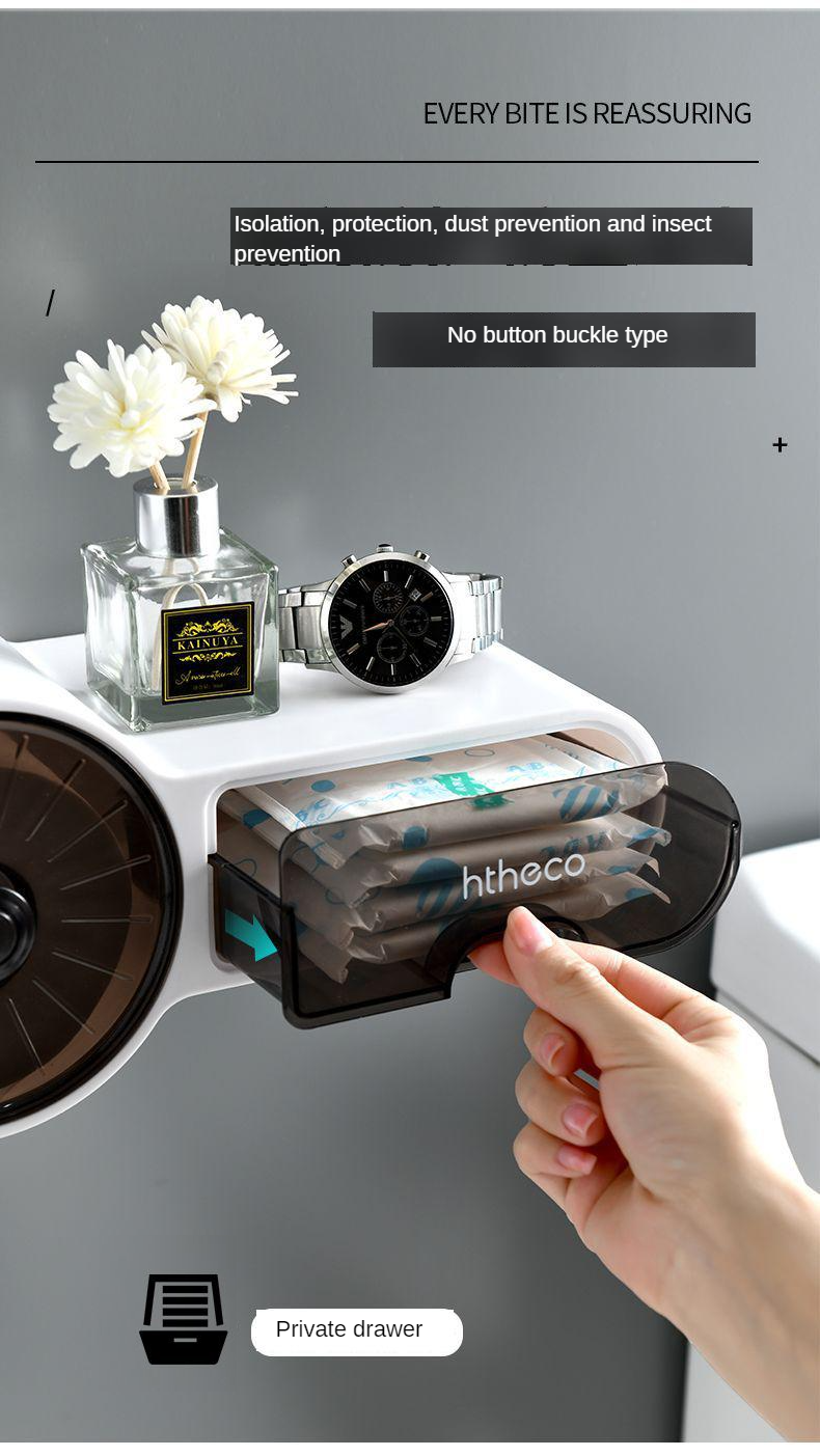Household roll tissue box toilet paper drawer tissue holder toilet paper rack free punch wall-mounted