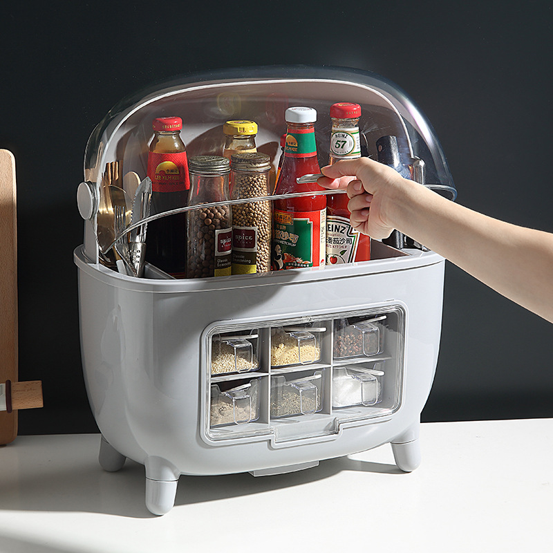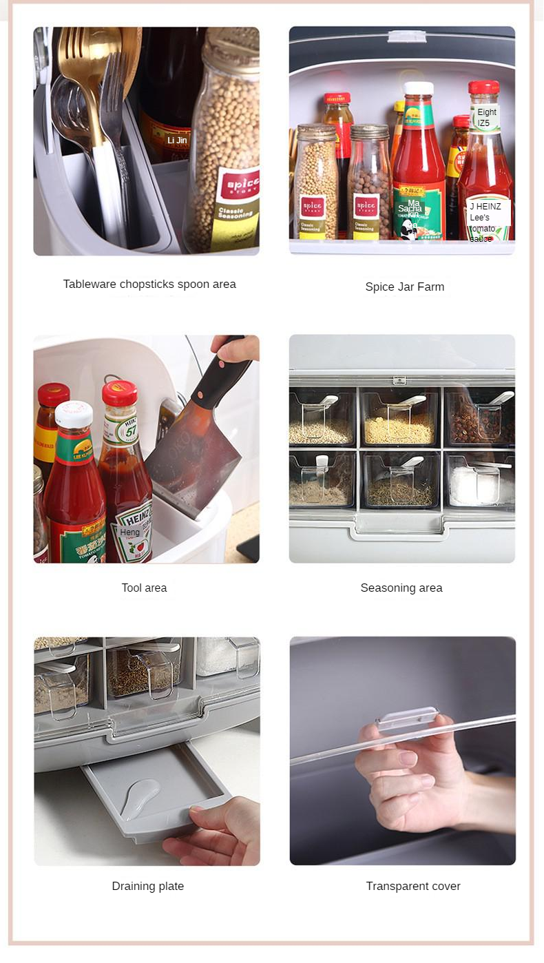Kitchen Spice Rack, Knife Holder, Multi-function Condiment Set, Drainage Supplies and Appliances Storage Box