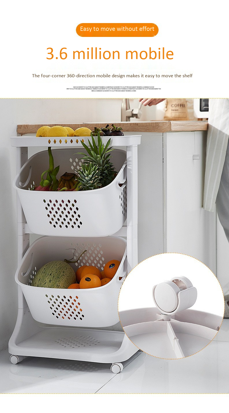 Kitchen vegetable storage basket, plastic storage rack (2 layers, 2 pcs minimum)