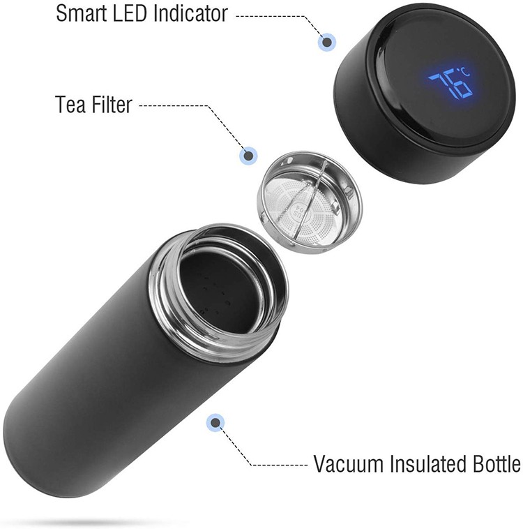 Made of high quality stainless steel material thermos bottle, non-stick, eco-friendly, heat- resistant, beautiful design, smart LED temperature display , multi colors in stock optional, OEM/ODM are welcome, custom color and print logo are available