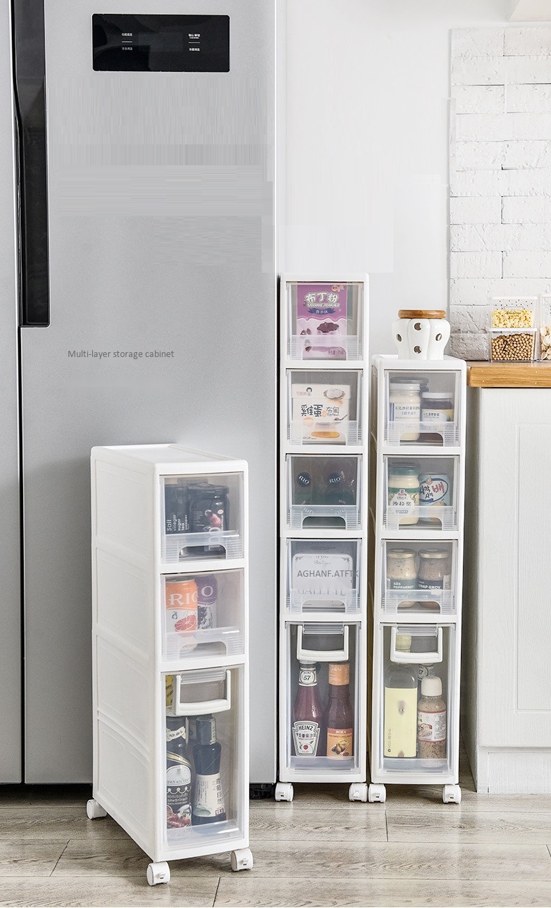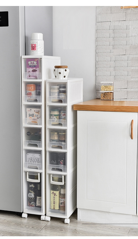 Plastic slot cabinet with drawers and drawers with wheels (2 floors)
