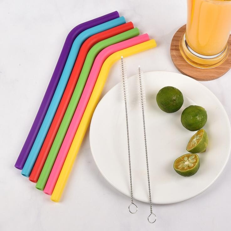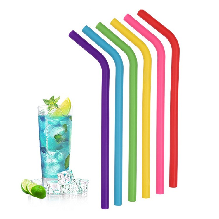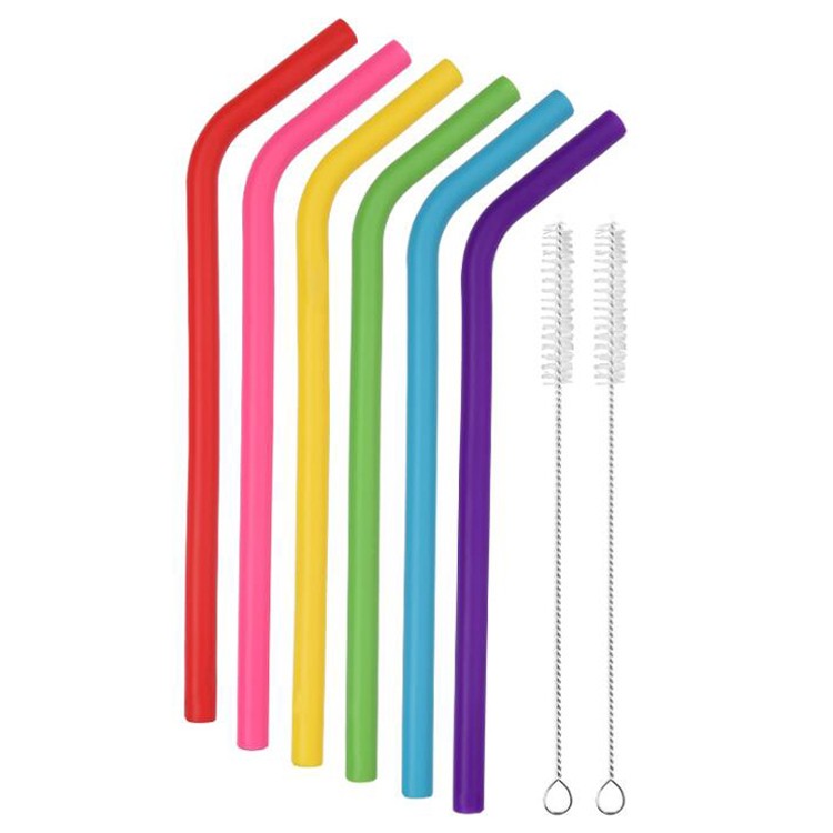 6pcs 220*10mm bent silicone straws set