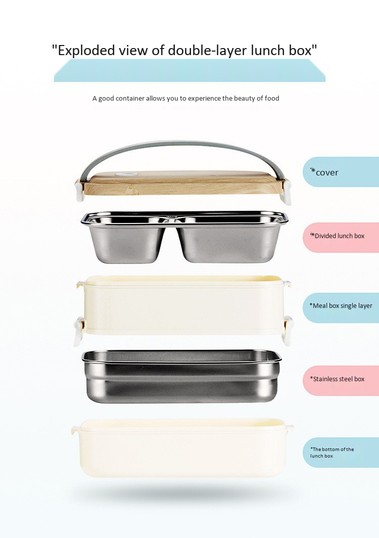 Portable large-capacity stainless steel double-layer insulated lunch box