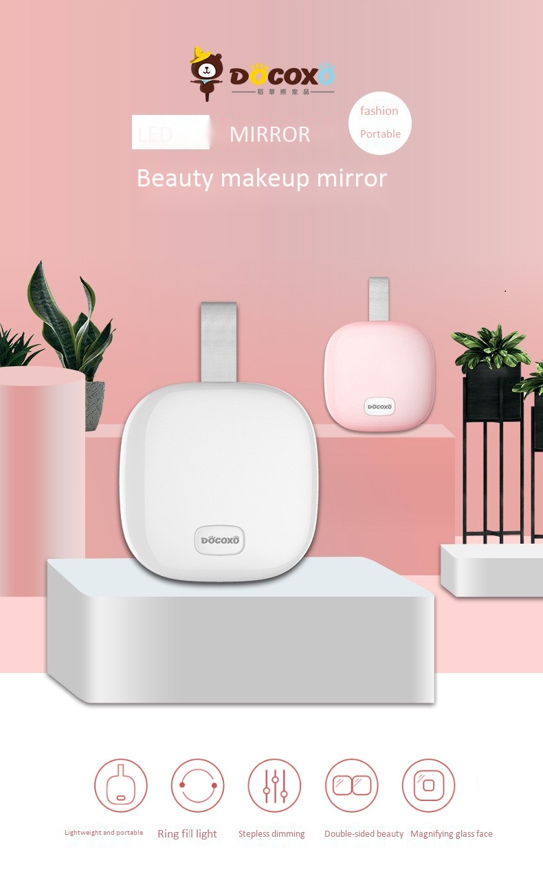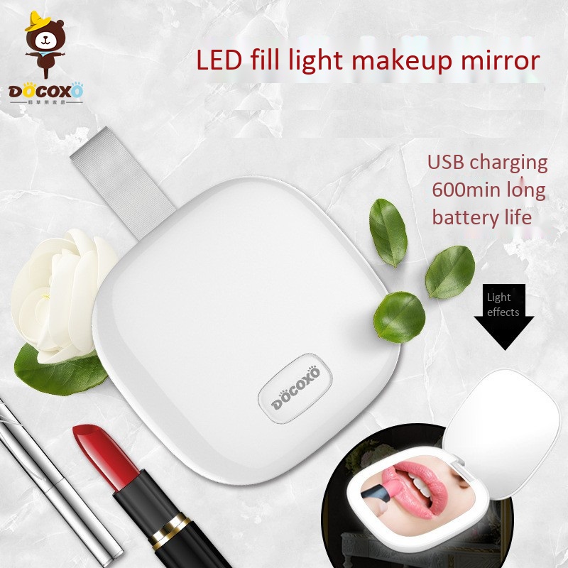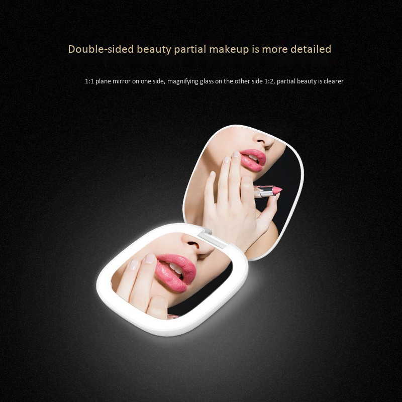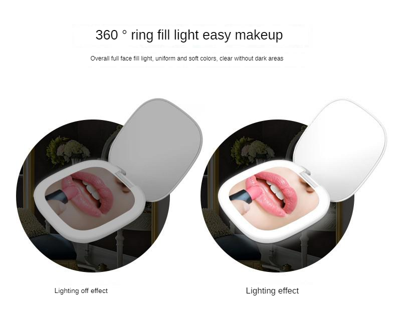 Portable mirror led light mini flip round mirror double-sided makeup mirror female portable folding with light