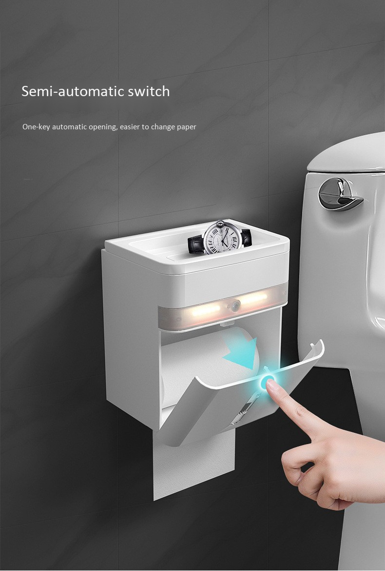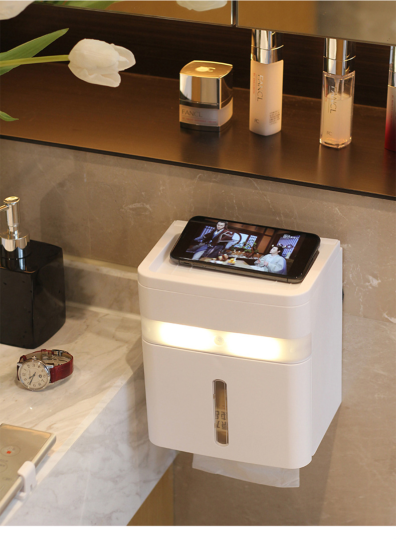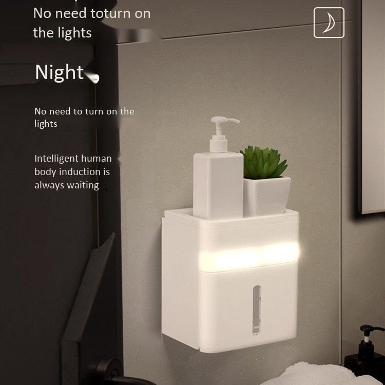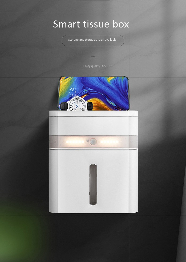 Smart sensor lamp hanging wallpaper towel box Waterproof storage box for bathroom and washroom (usb charging)