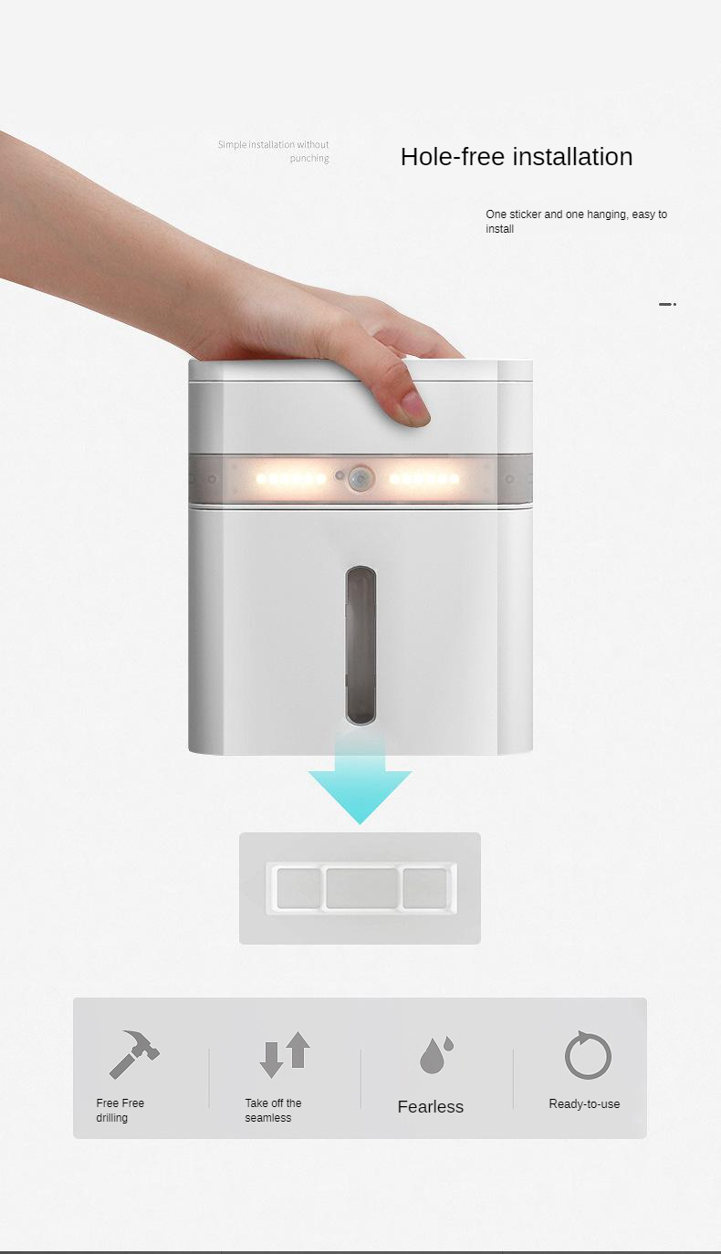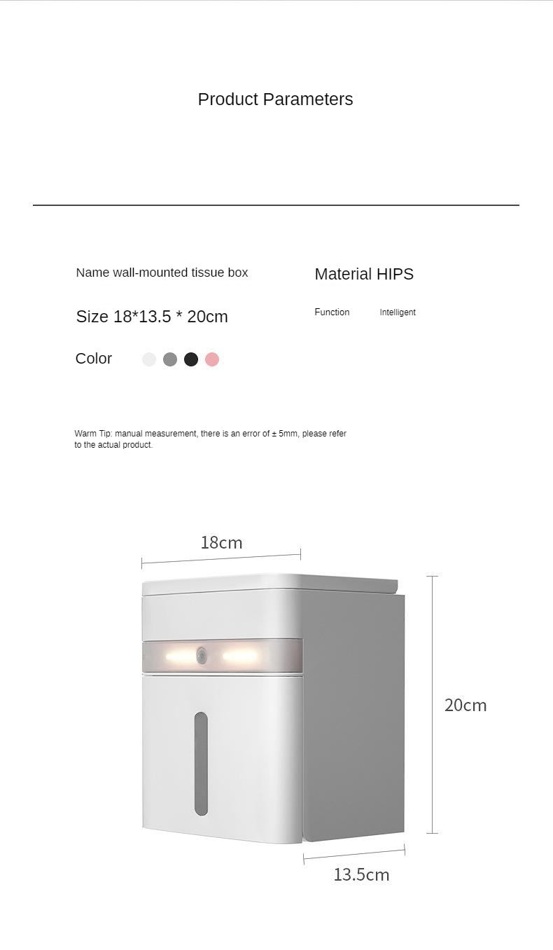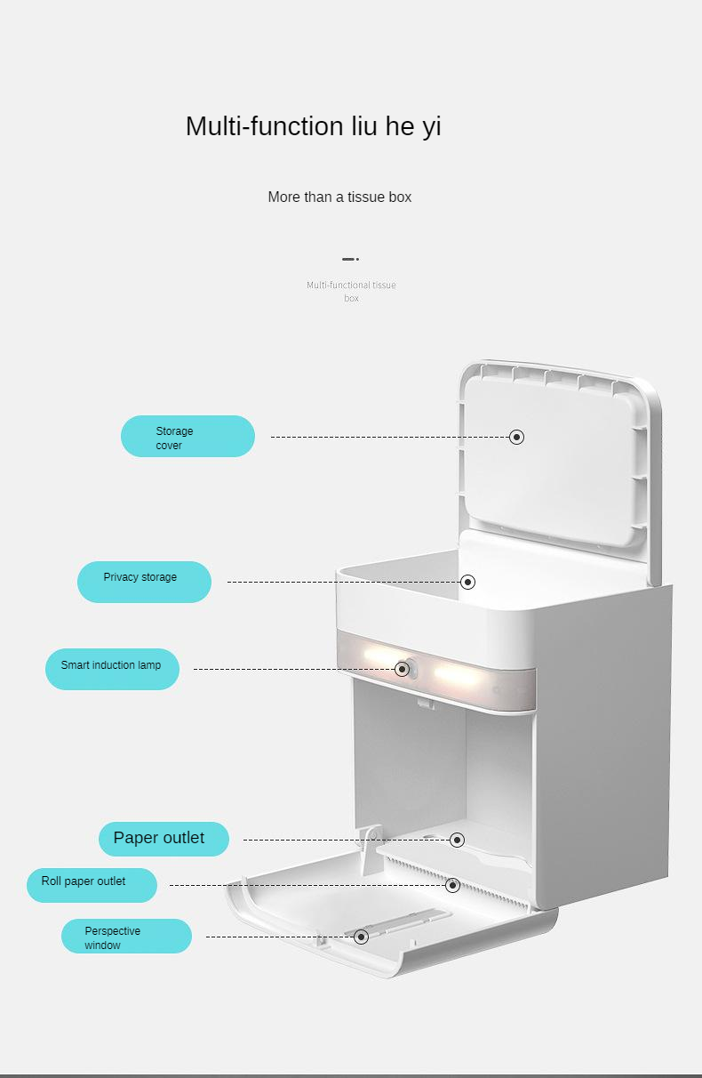 Smart sensor lamp hanging wallpaper towel box Waterproof storage box for bathroom and washroom (usb charging)