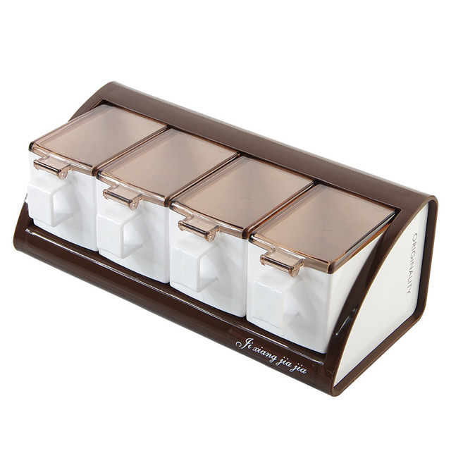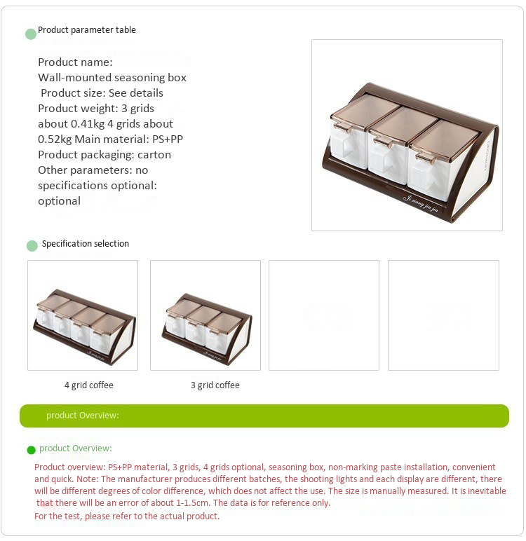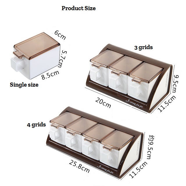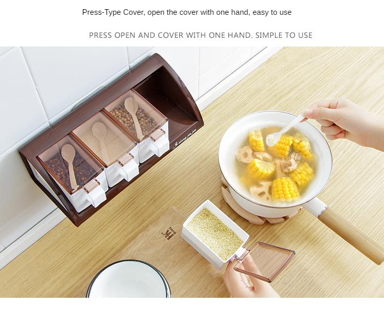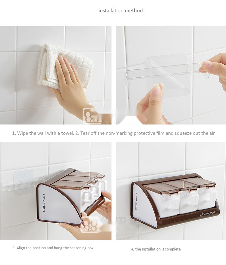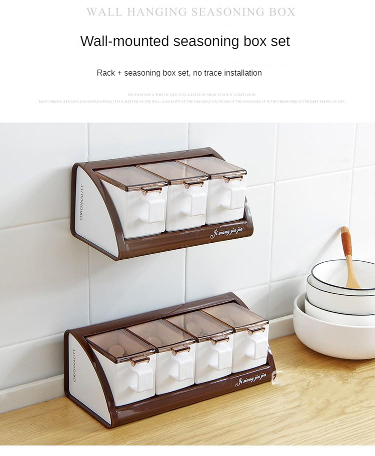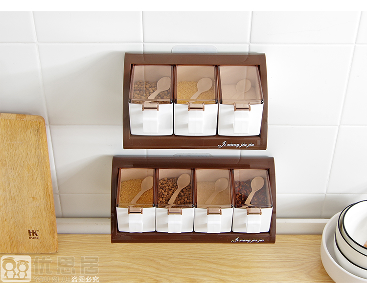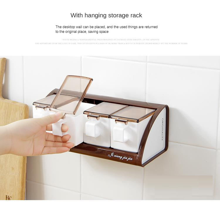 Wall-mounted plastic seasoning box set (3 compartments, 1 spoon free)